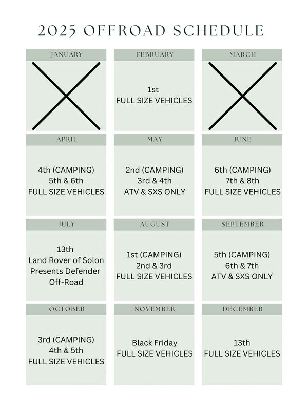 Located in Garrettsville, OH. Southington Offroad Park is situated on over 1500 acres. We have trails and obstacles ranging from mild to wild for the OHV. We are a family friendly park that includes a modern bath house, a campground with electric, and a large pavilion for your enjoyment. In our cabin you can purchase drinks, memorabilia, and enjoy various options for lunch! The park also offers a playground just for the kids, a sand volleyball court, and all the mud, sand, rocks, and hills you can handle.